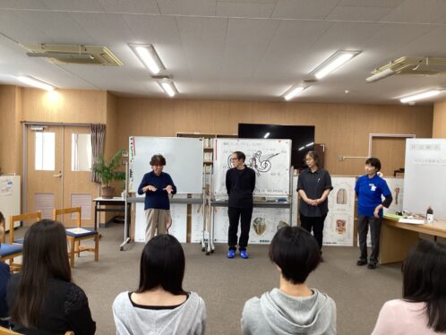 先日、基礎看護技術の一環で1年生が手話講座を受講しました。御殿場市聴覚障害者の会の方々、手話通訳者、社会福祉協議会の職員に来ていただき、手話の大切さと簡単な手話での会話を学びました。耳の不自由な方と手話で会話をすることで意思を通わすだけでなく心まで通う気がします。